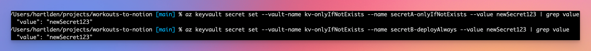One example for this are Key Vault secrets. I’d often run into the case, where I’d want to create secrets during the Bicep deployment in order to be able to reference them in other pieces of infrastructure. However, I did not want their values to be overwritten by subsequent deployments. They should be created once, but then not be touched again.
