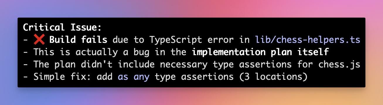 Second example, this time the Engineer found an error in a test written in the implementation plan: