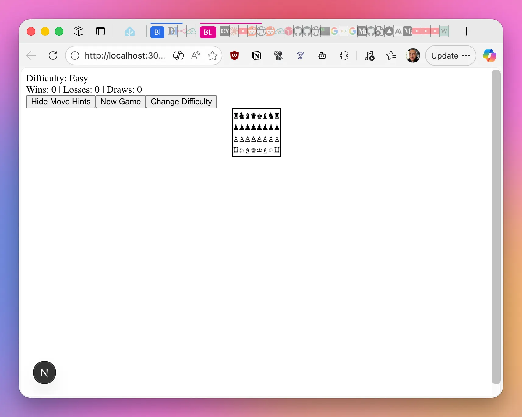 Here is the main issue with this app: The web page loads fine and allows you to start a new game, but the chess board