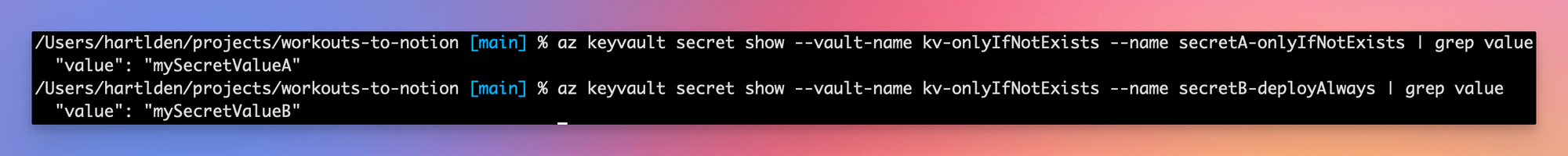 One example for this are Key Vault secrets. I’d often run into the case, where I’d want to create secrets during the Bicep deployment in order to be able to reference them in other pieces of infrastructure. However, I did not want their values to be overwritten by subsequent deployments. They should be created once, but then not be touched again.